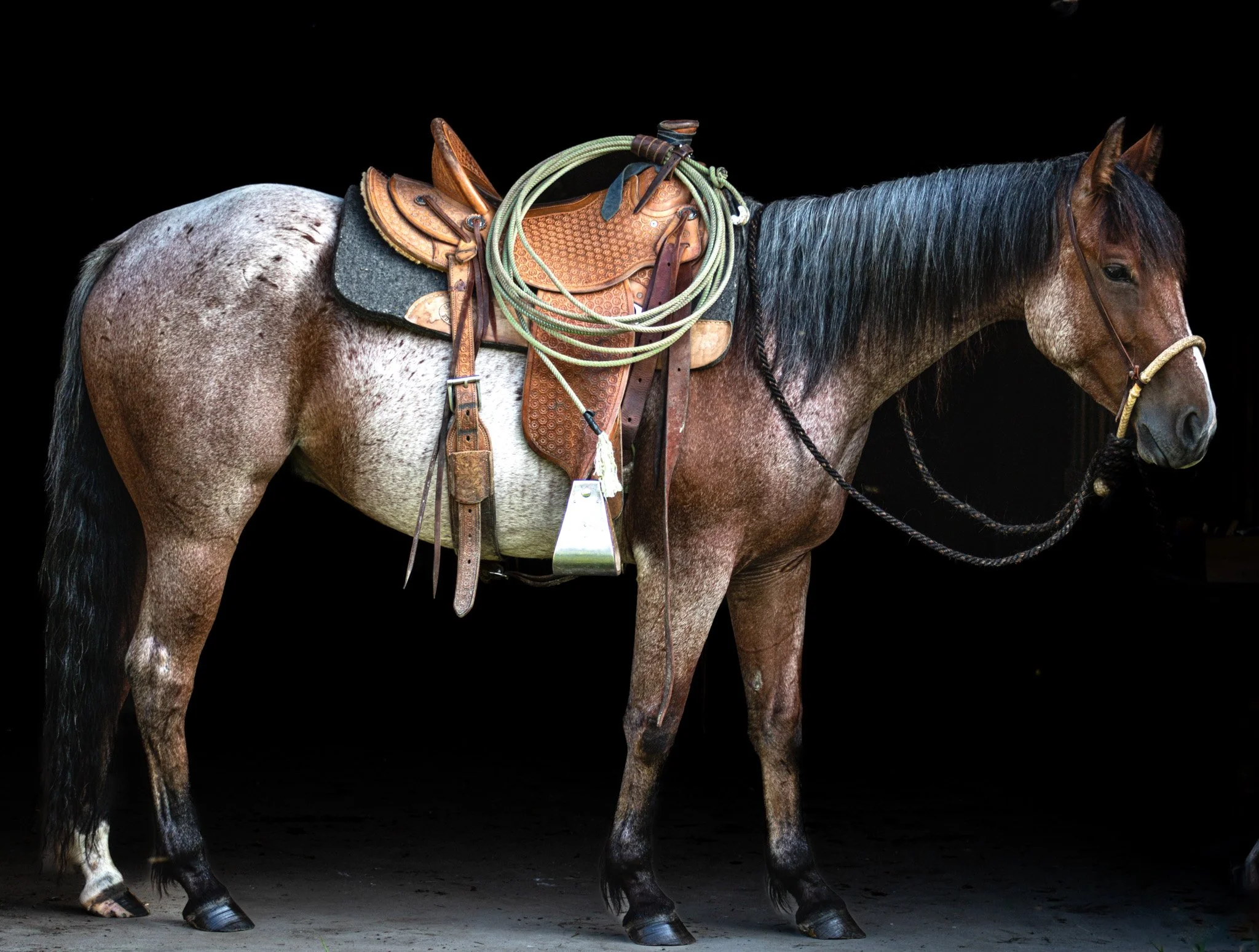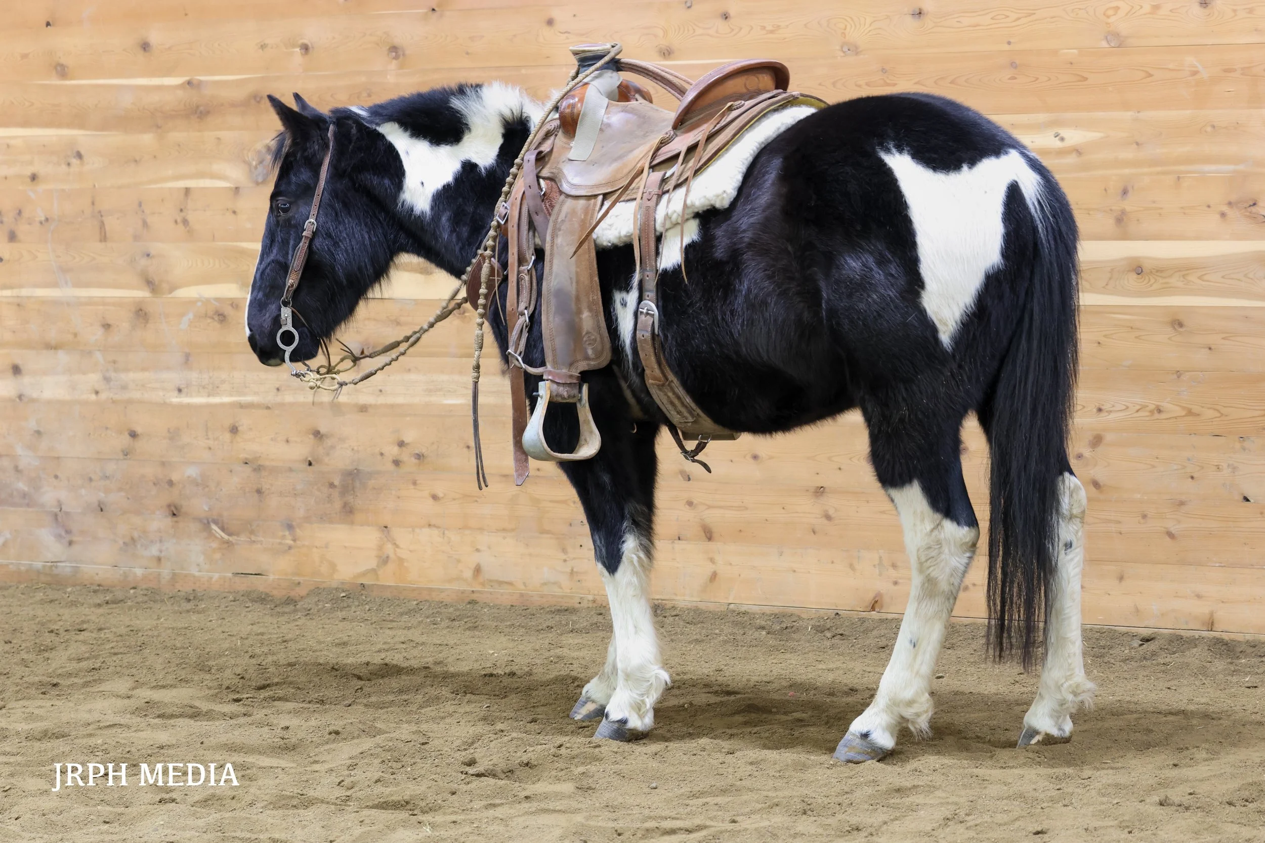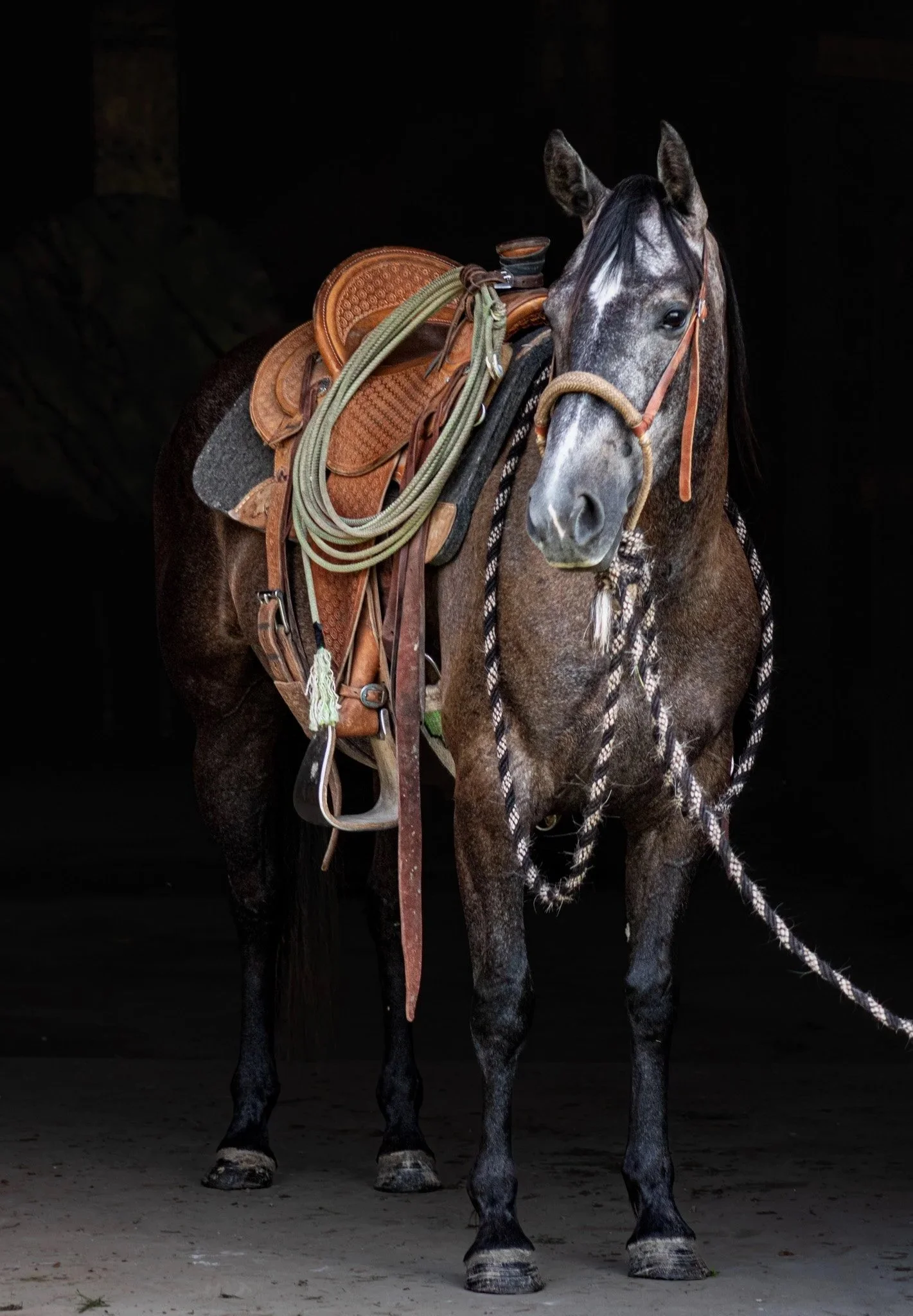 Photos with tack and without tack (halter/bridle; saddle and pad; rider mounted if requested).
